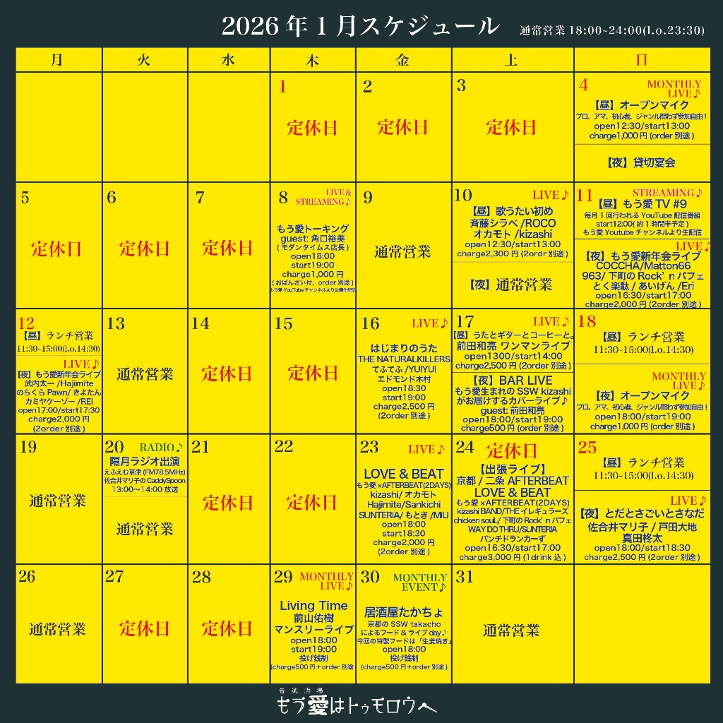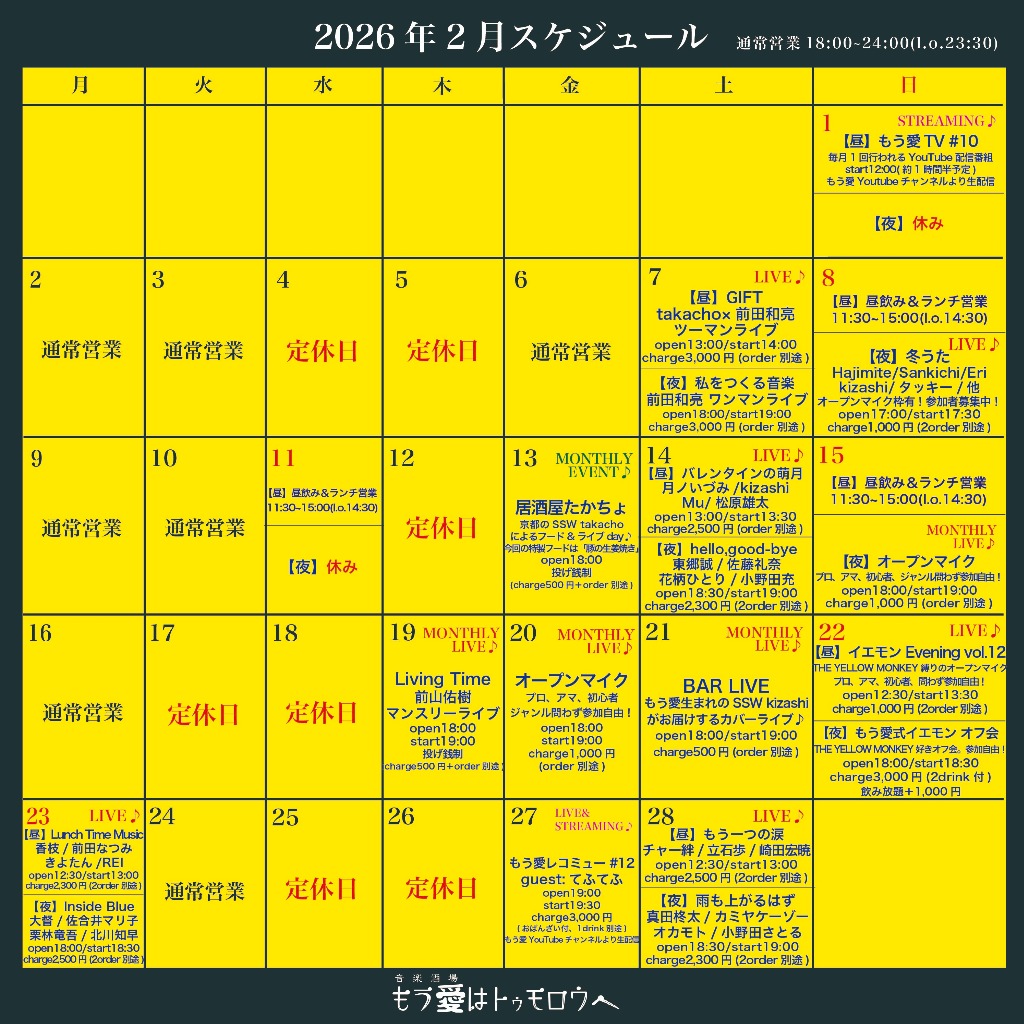 open18:00/live20:00〜,21:30〜/end22:00頃予定