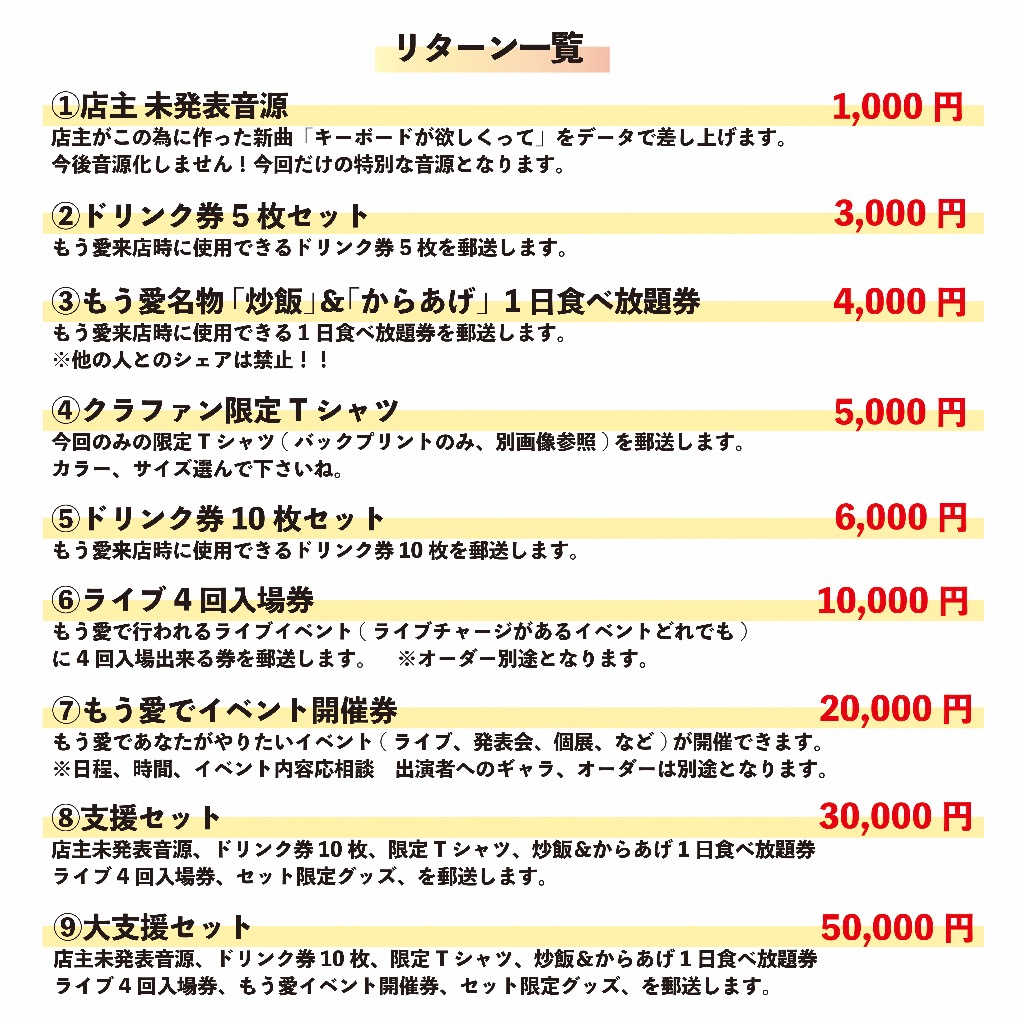 金額は設定させていただきましたが、金額以上集まった場合もお店継続の為の資金として使わせていただきます(機材費等)。